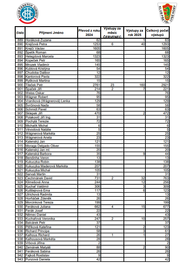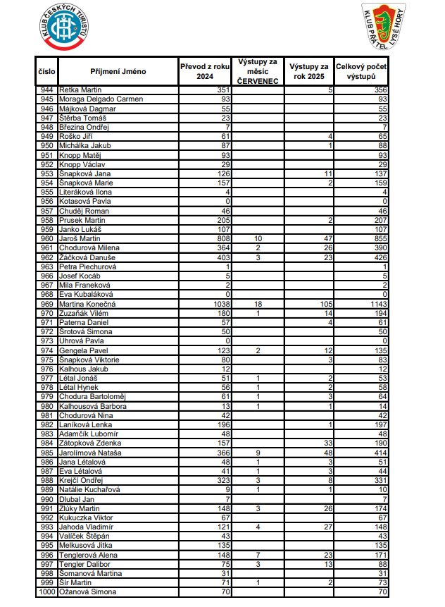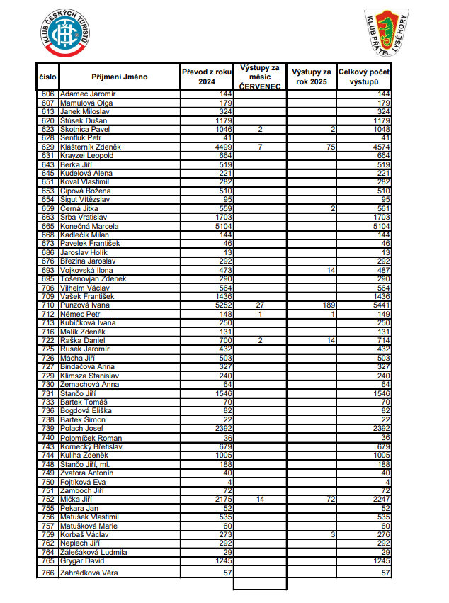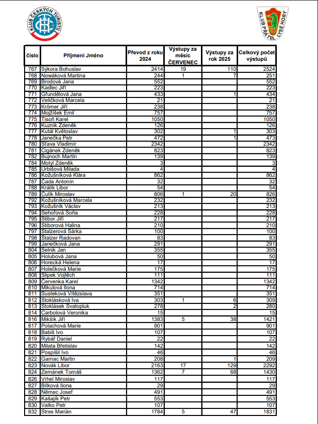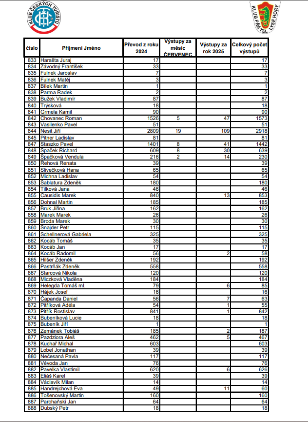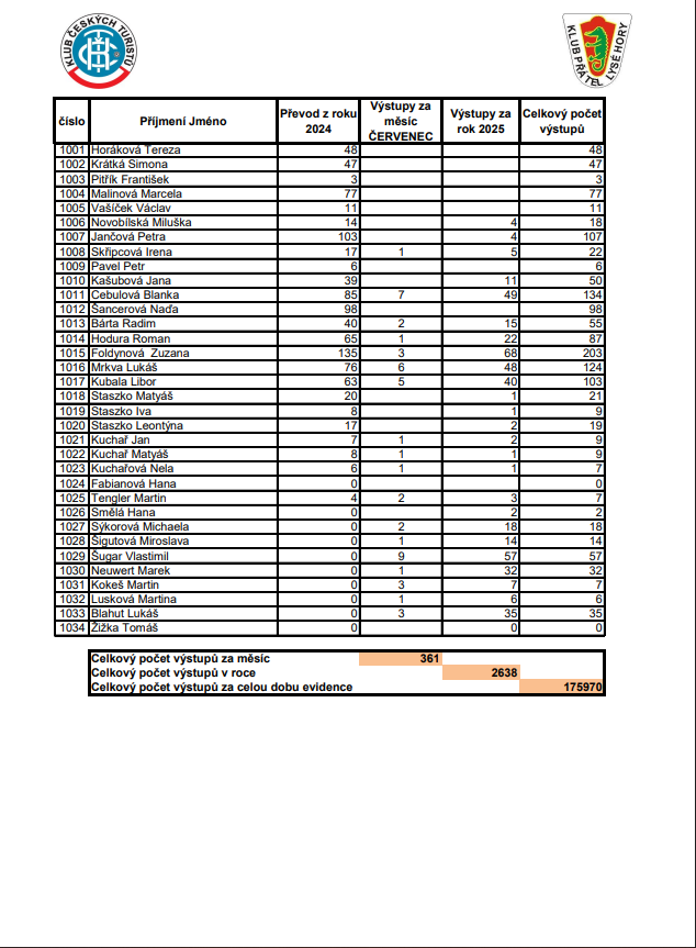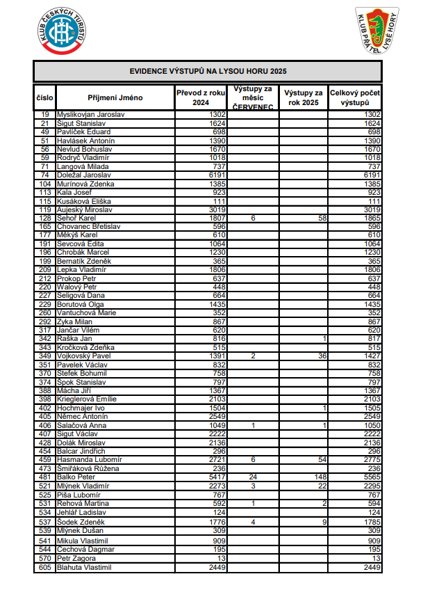 Soupis výstupů na Lysou horu za ČERVENEC 2025