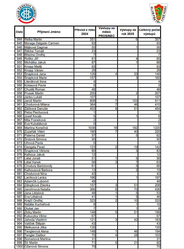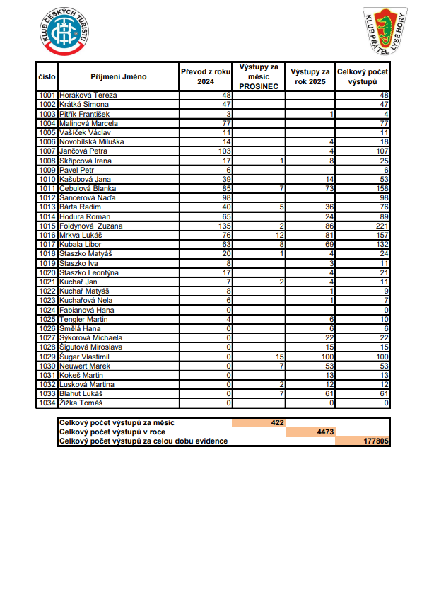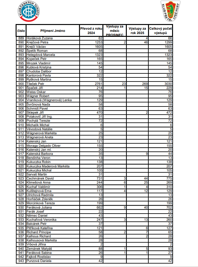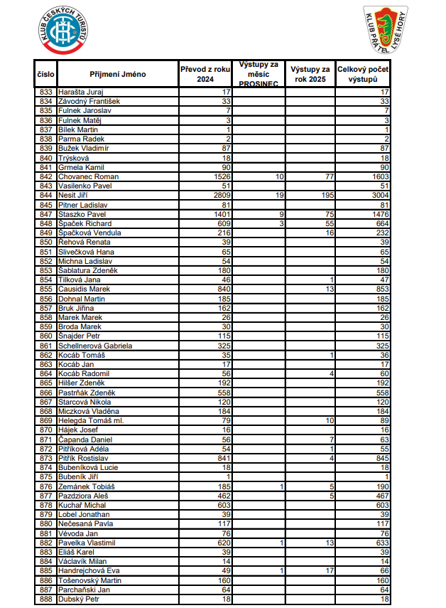 Soupis výstupů na Lysou horu za PROSINEC 2025